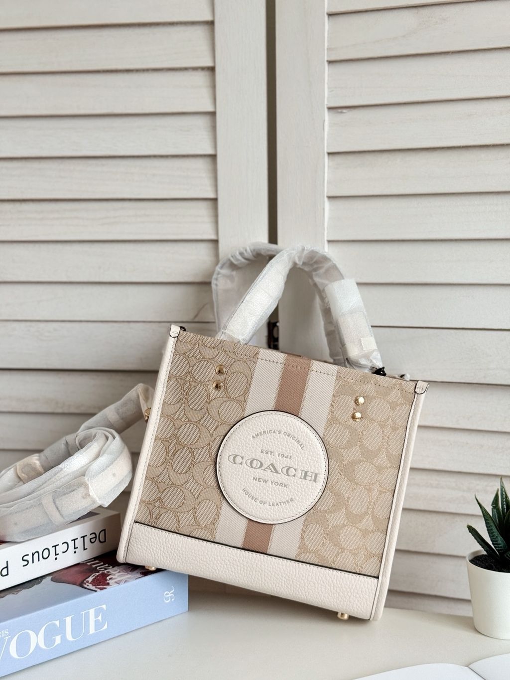 COACH C8417 / CQ878 DEMPSEY TOTE 22 IN SIG JACQUARD LIGHT KHAKI CHALK