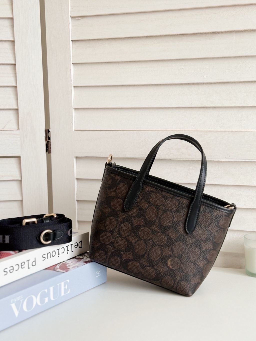 COACH CW032 CITY MINI TOTE BAG IN SIGNATURE CANVAS WALNUT/BLACK