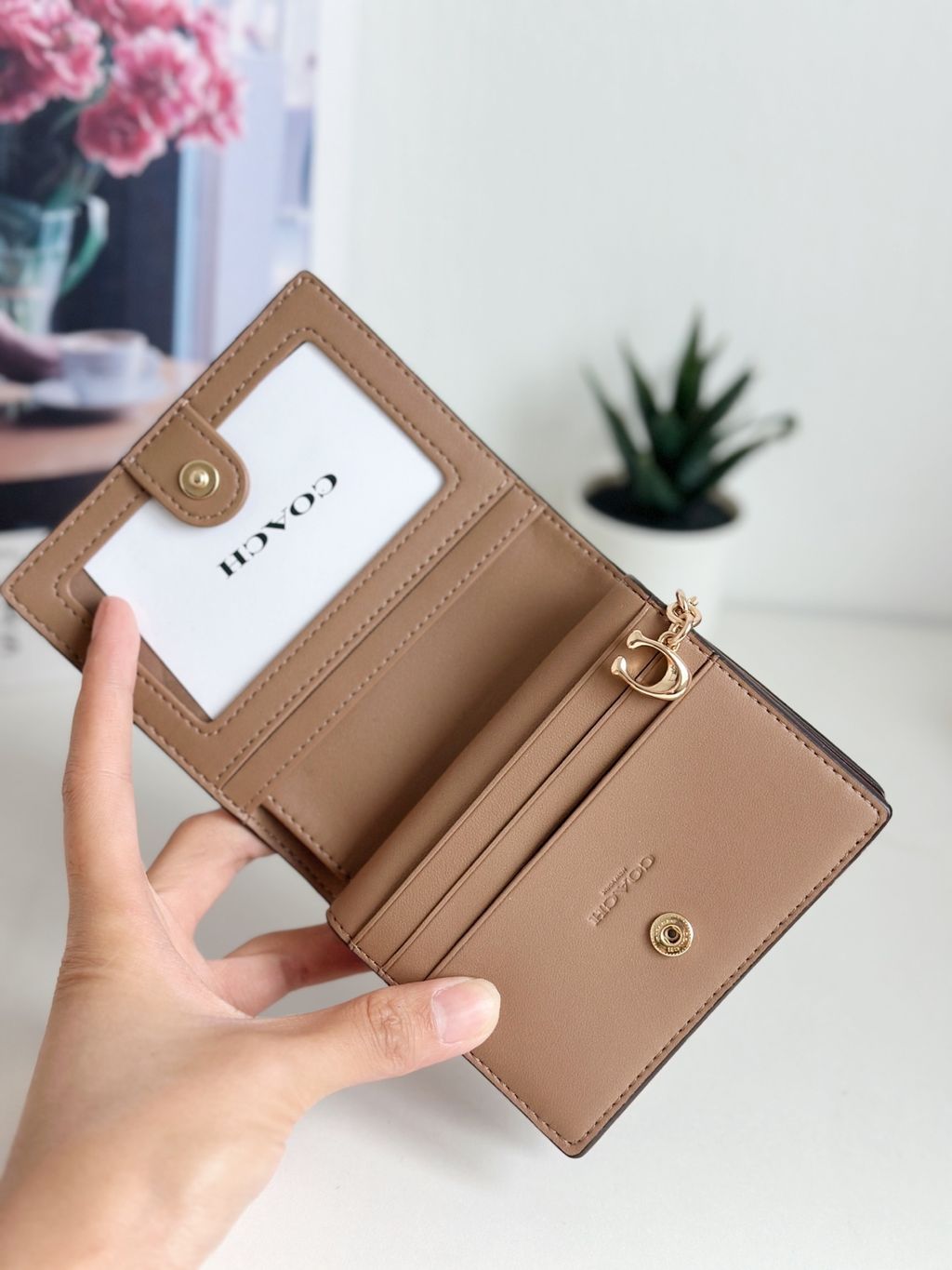 COACH CW789 SNAP WALLET IN SIGNATURE CANVAS TAN/BROWN