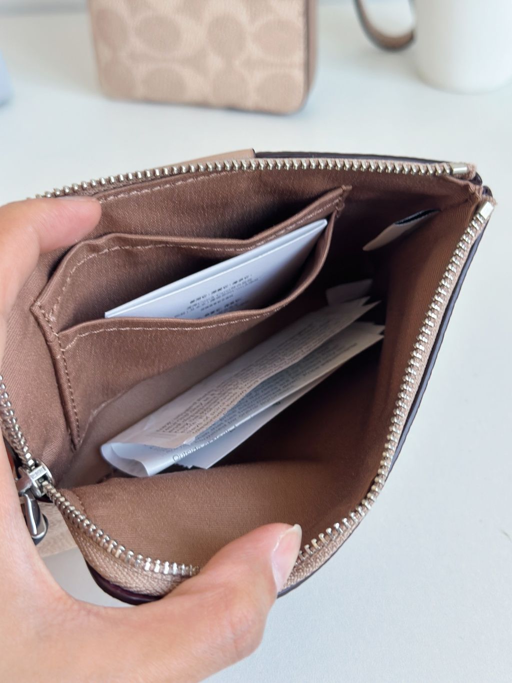 COACH CW854 CORNER ZIP WRISTLET IN SIGNATURE CANVAS WITH STRIPE SAND/TAUPE