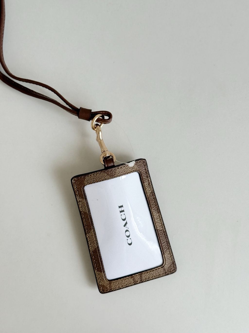 MATERIAL:Signature coated canvas with leather detailsSIZE:2 3/4" (L) x 4" (H)7 cm L x 10 cm HPRODUCT DETAILS:Two credit card slotsID windowDetachable lanyardImportedStyle # CZ285