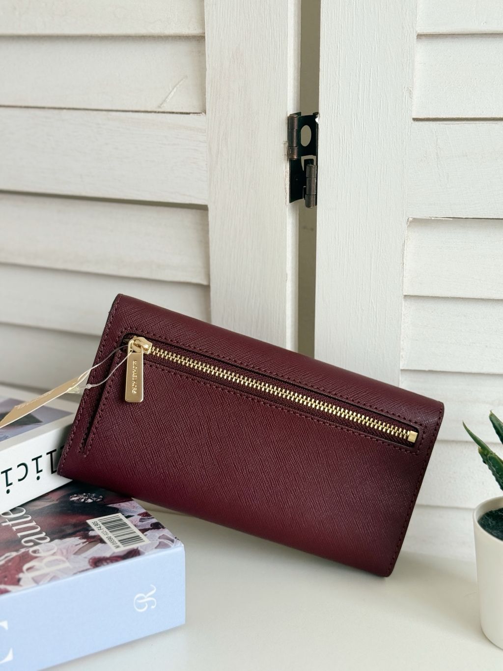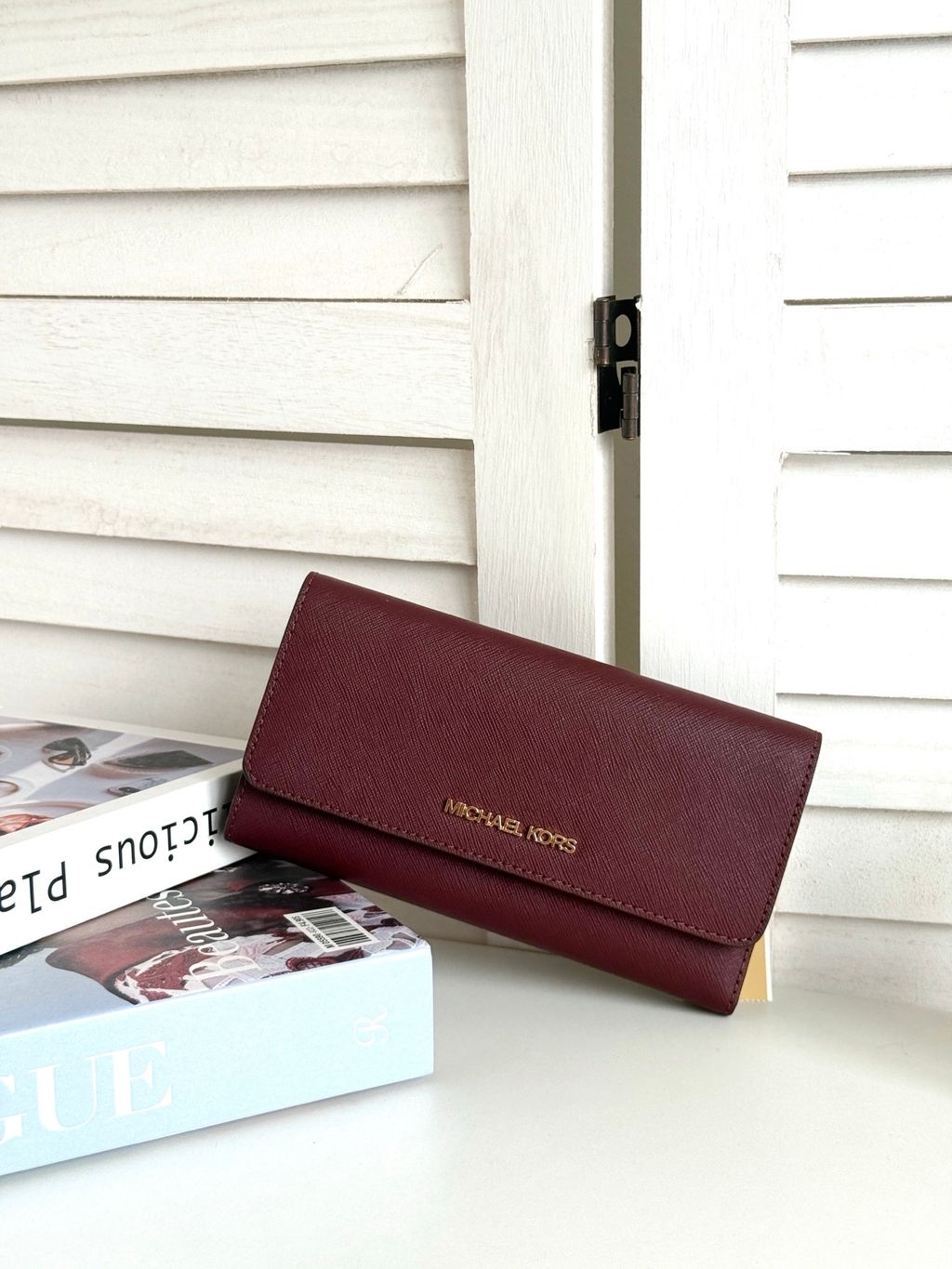MICHAEL KORS 35S8GTVF7L JET SET TRAVEL LARGE TRIFOLD WALLET MERLOT