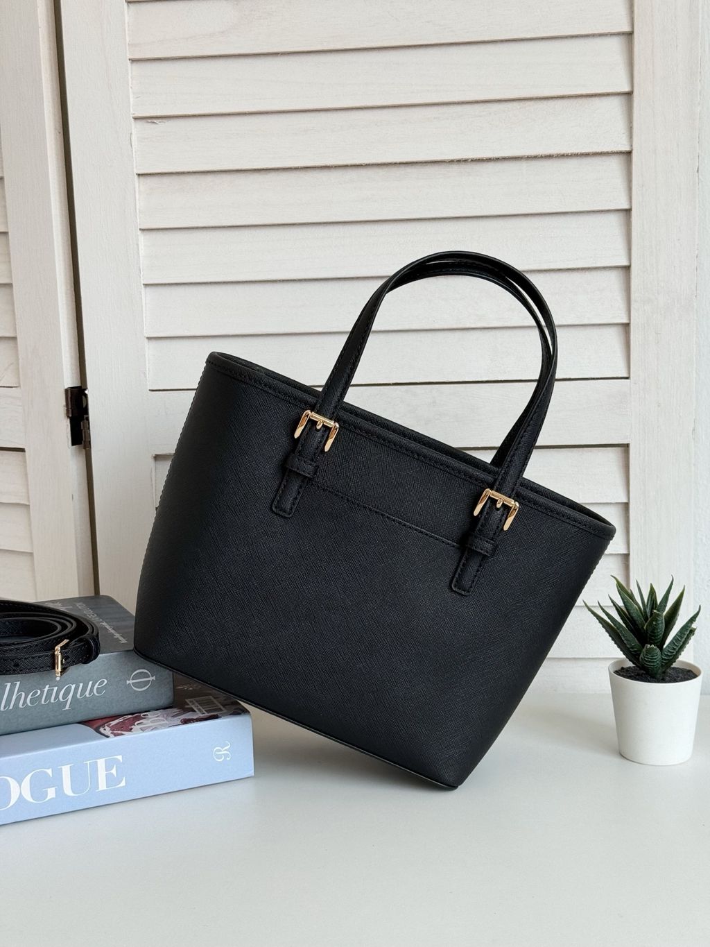 MICHAEL KORS 35T9GTVT0L JET SET TRAVEL EXTRA SMALL SAFFIANO LEATHER TOTE BAG IN BLACK