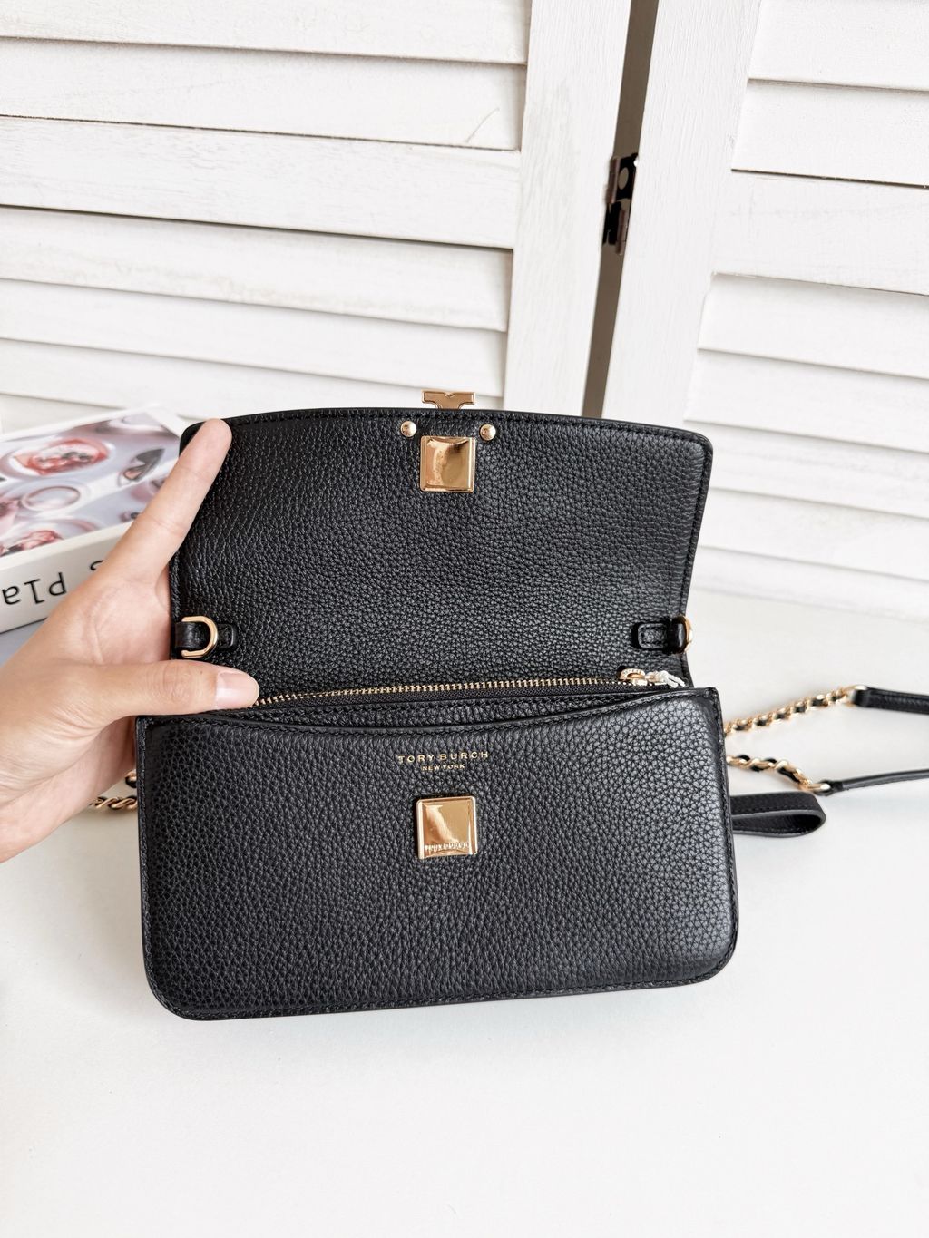 TORY BURCH 141012 BRITTEN CHAIN WALLET WITH WRISTLET CROSSBODY BAG IN BLACK