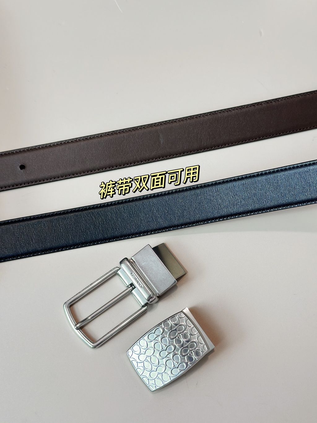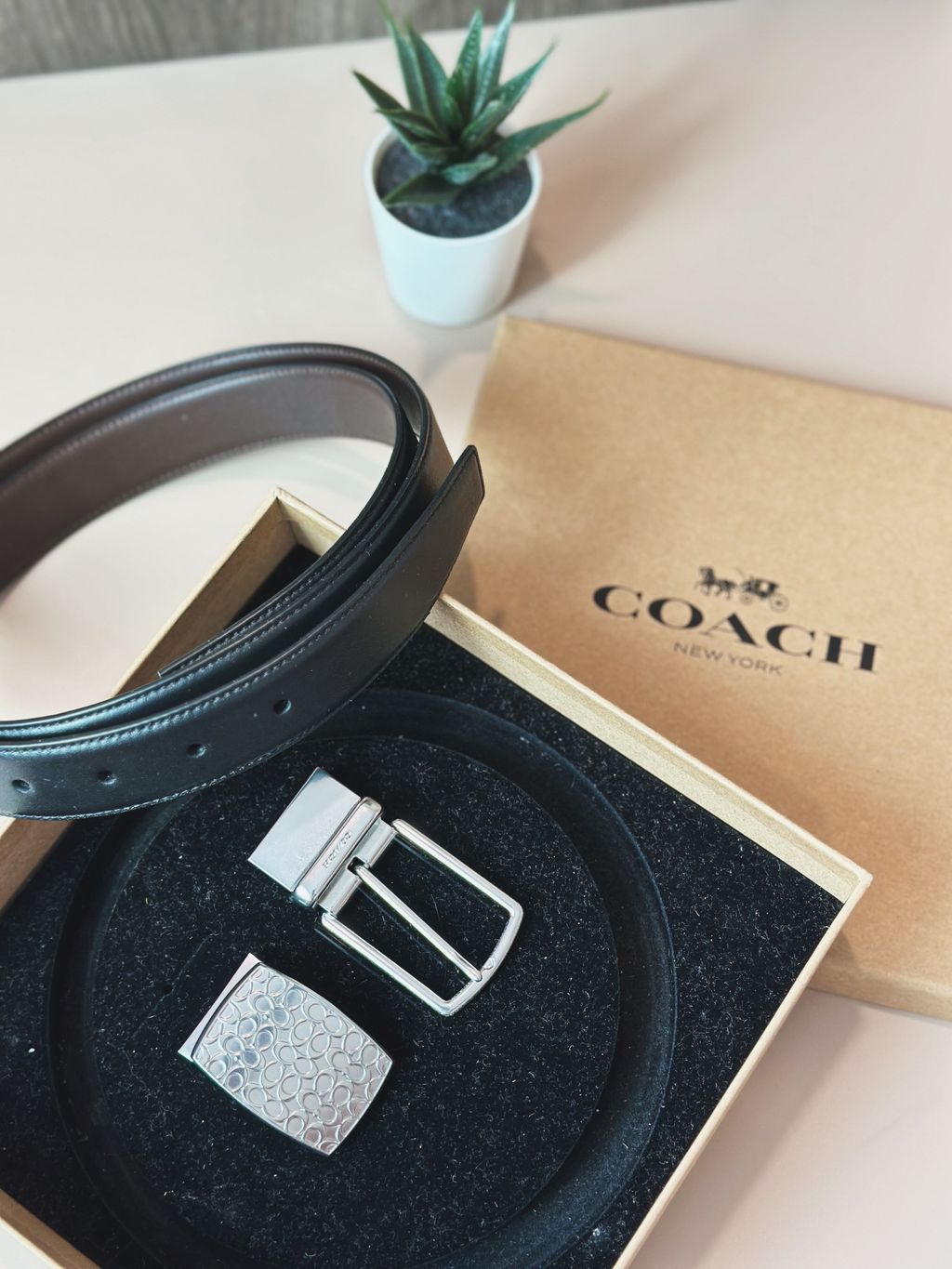 COACH F65186 SIGNATURE PLAQUE HARNESS CUT TO SIZE BELT IN BLACK / DARK BROWN
