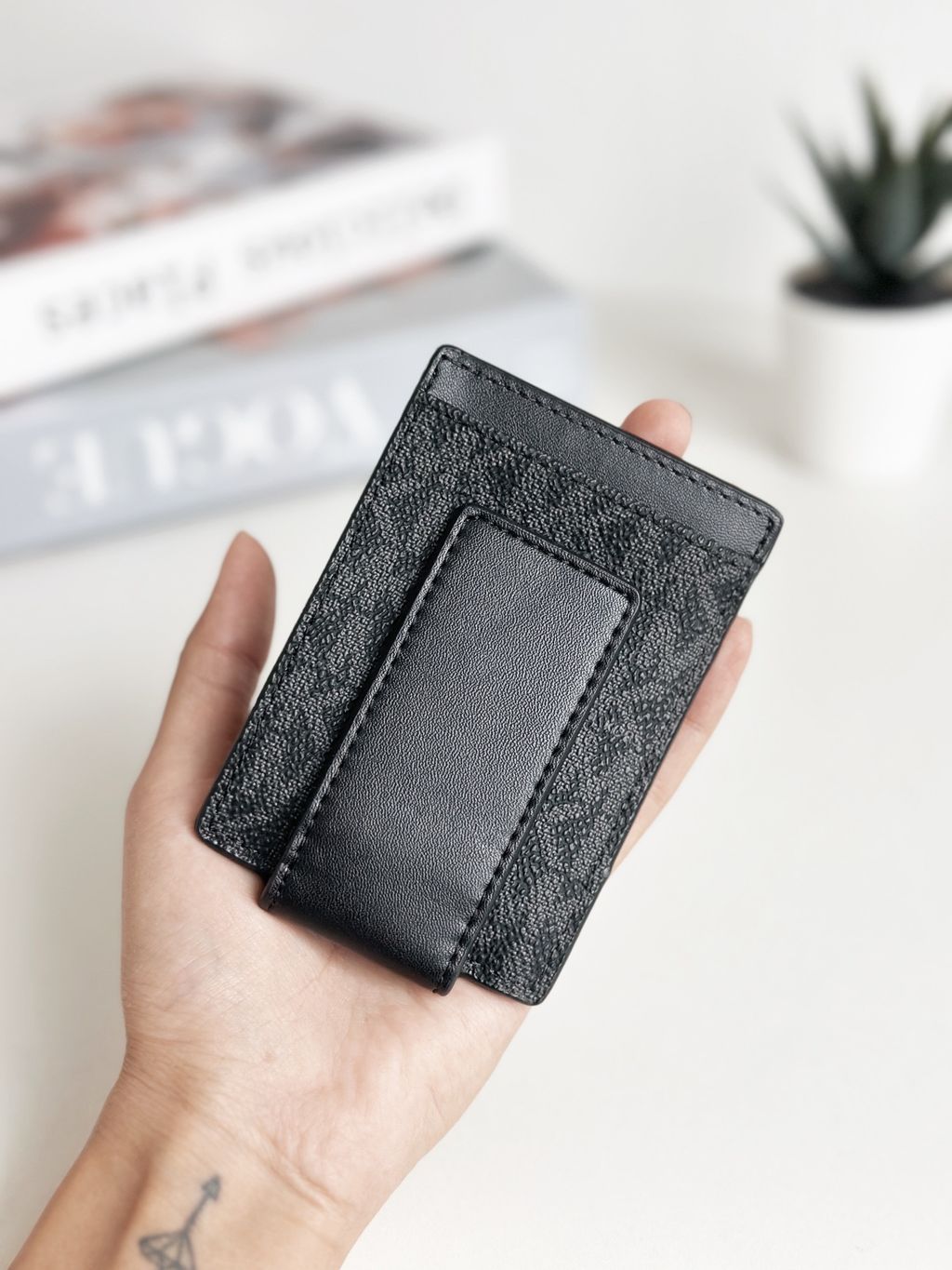 MICHAEL KORS 36F4LCOD1B COOPER SIGNATURE LOGO MONEY CLIP CARD CASE IN BLACK