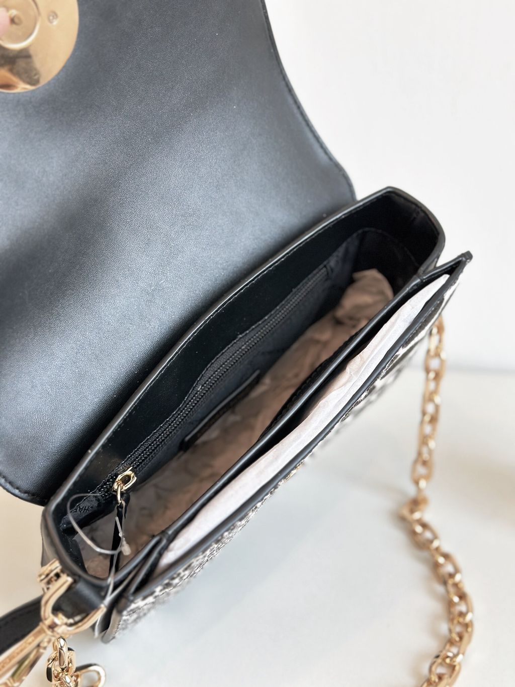 • Gold-tone hardware