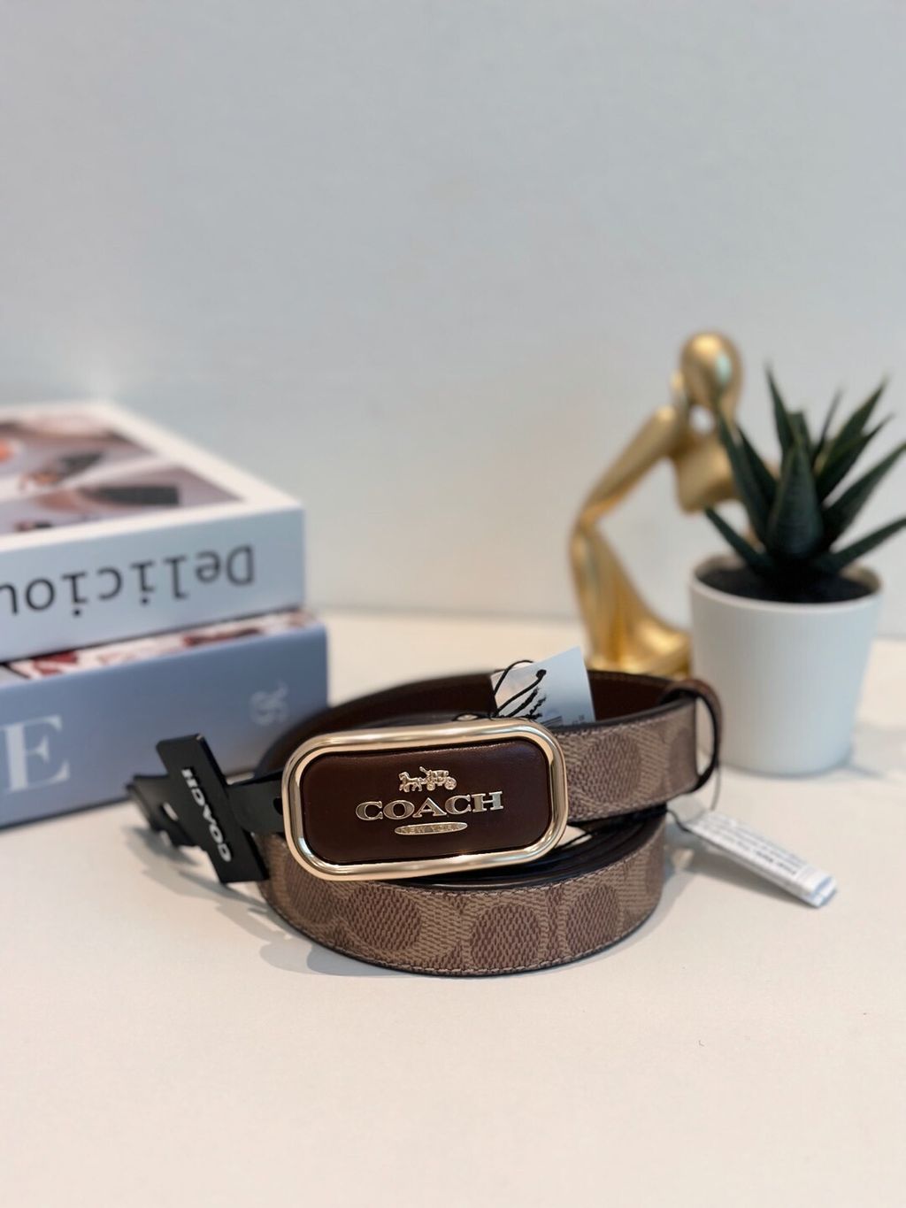 COACH CX052 SIGNATURE BUCKLE CUT TO SIZE REVERSIBLE MORGAN BELT 25MM IN KHAKI