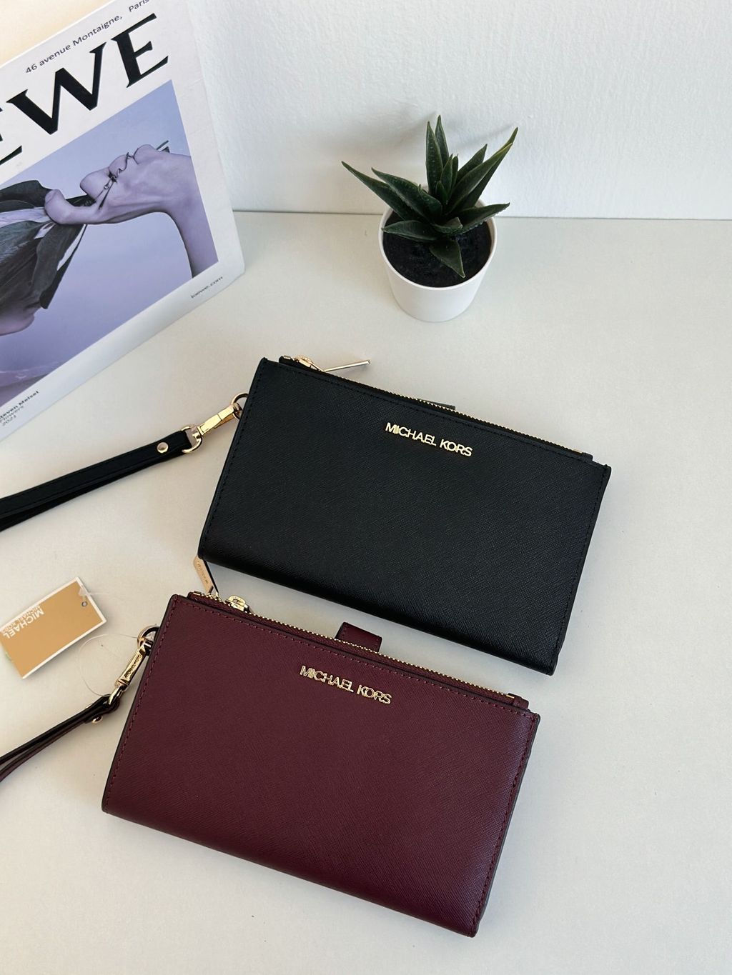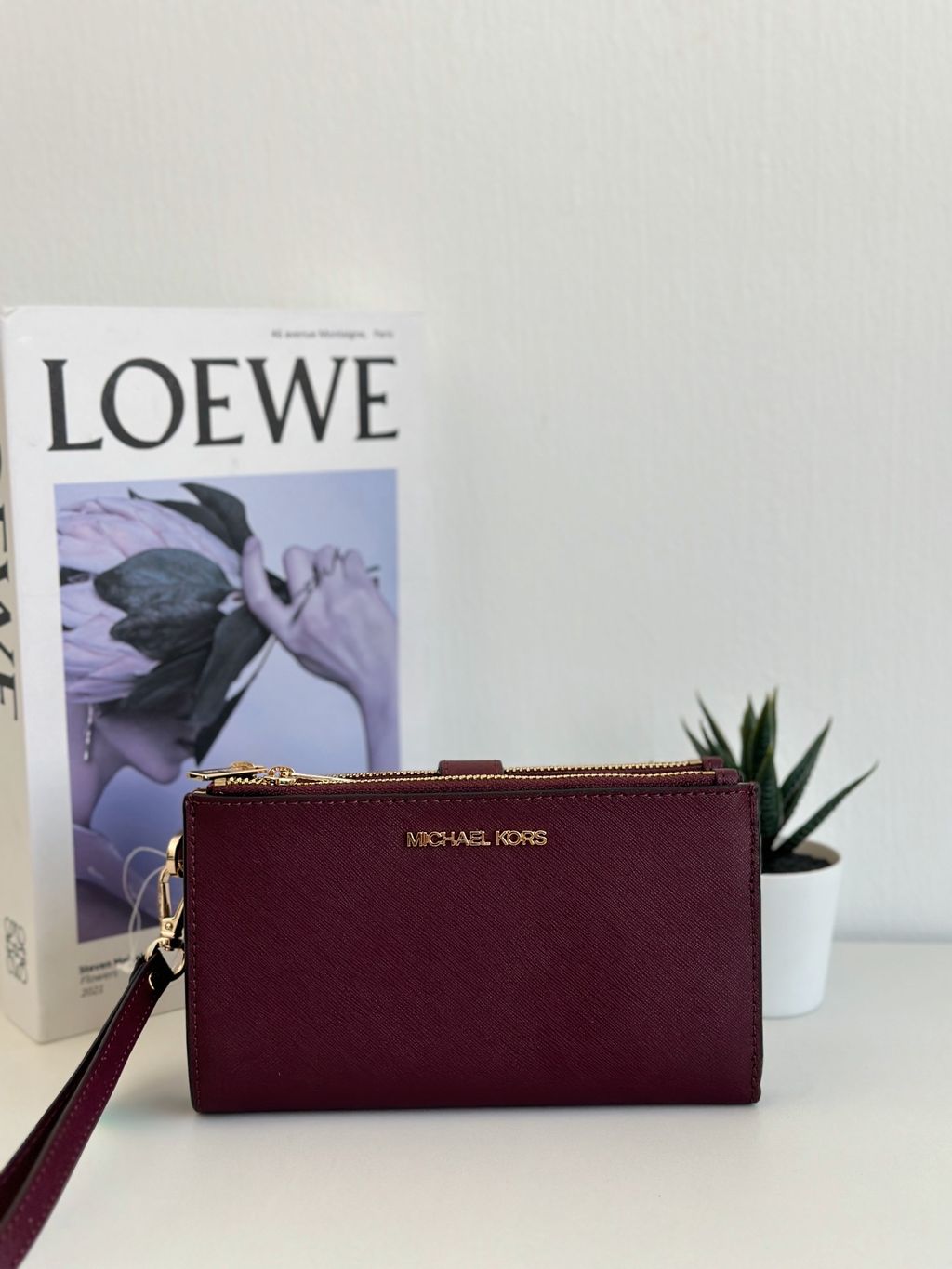 MICHAEL KORS 35F8GTVW0L LARGE DOUBLE ZIP WRISTLET LEATHER MERLOT