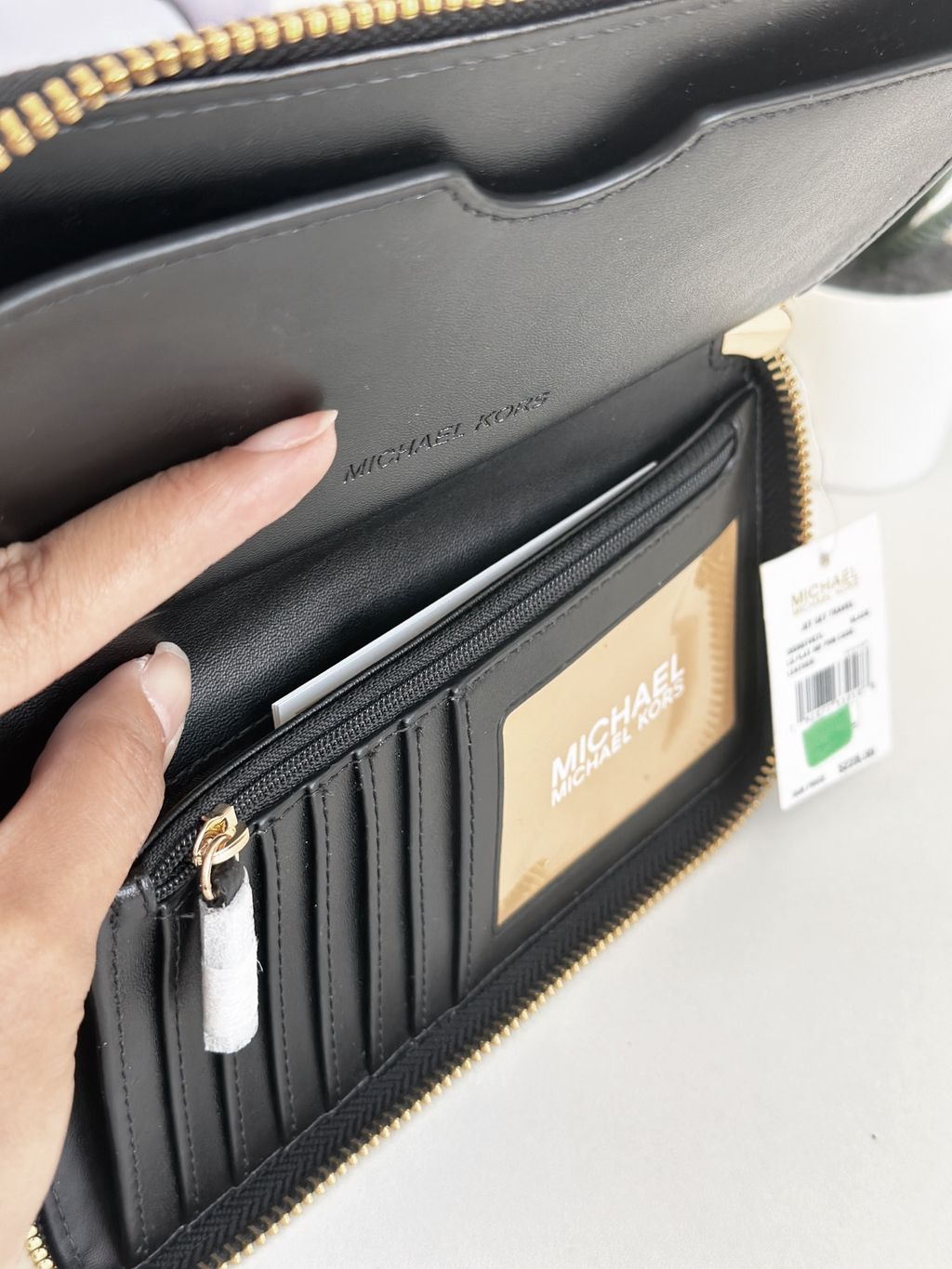 MICHAEL KORS 35S9GTVE7L JET SET TRAVEL LARGE FLAT MULTIFUNCTION PHONE CASE LEATHER BLACK