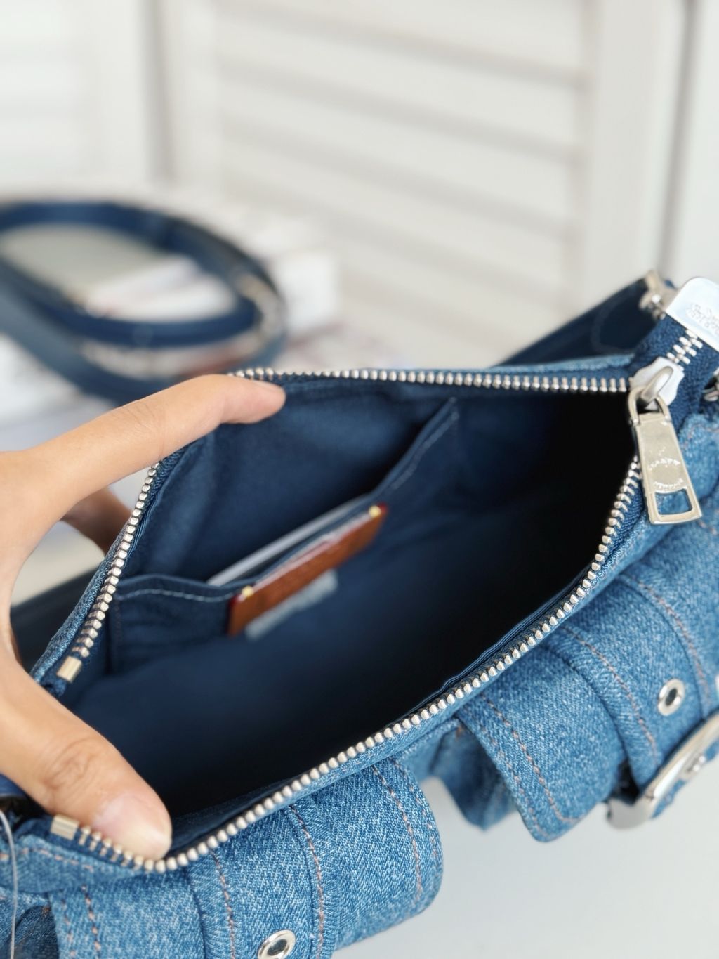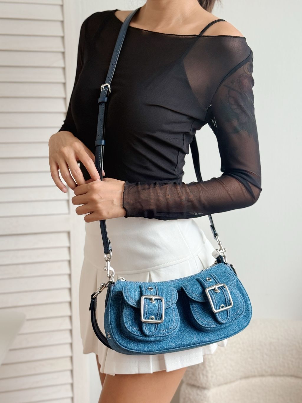 - Denim and smooth leather